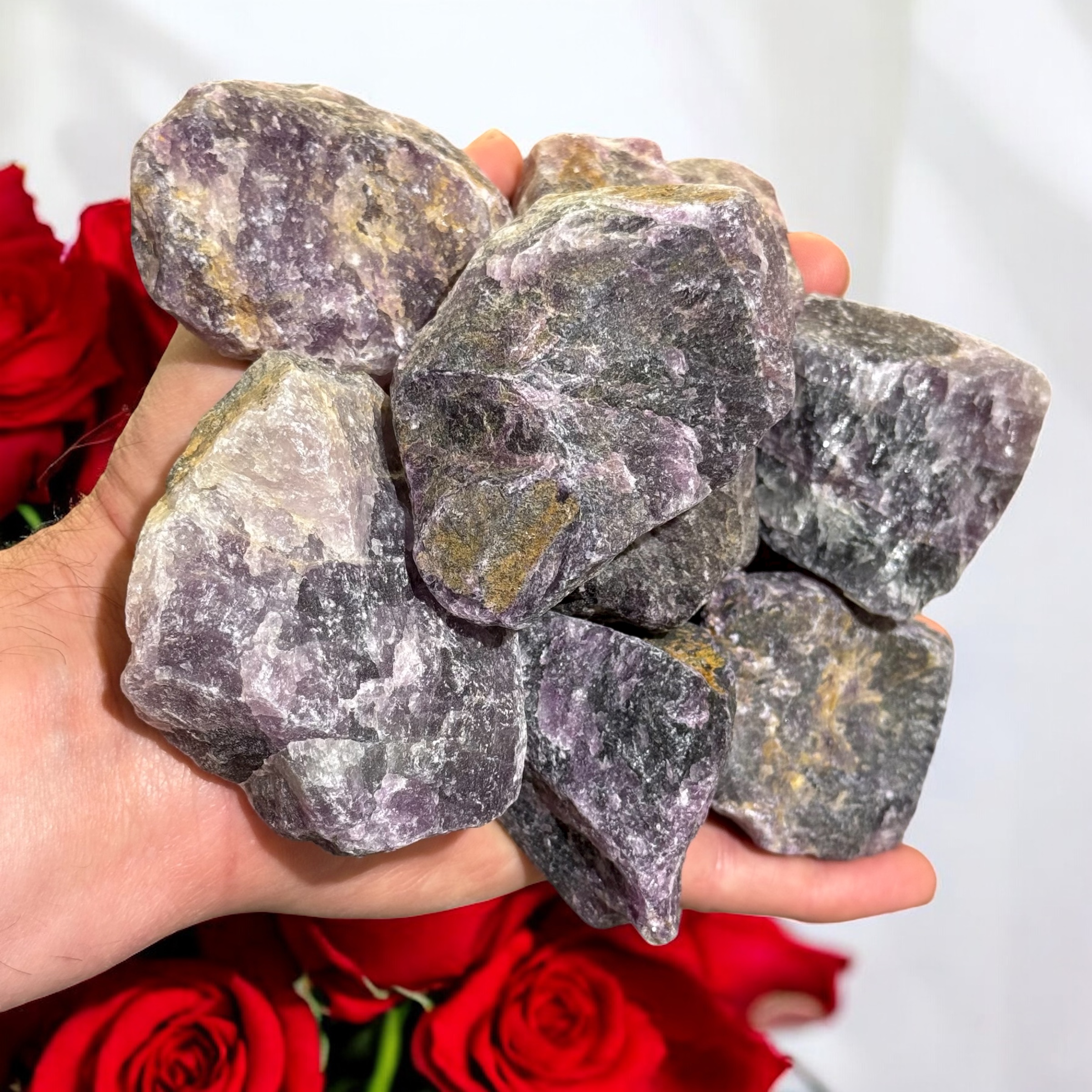 Disse smukke rå fluorit stykker fremstår i sin naturlige form med, lilla og eventuelt blålige nuancer. Fluorit er kendt som en krystal for mental klarhed, koncentration og beskyttelse, og i rå form udstråler den en kraftig og autentisk energi.