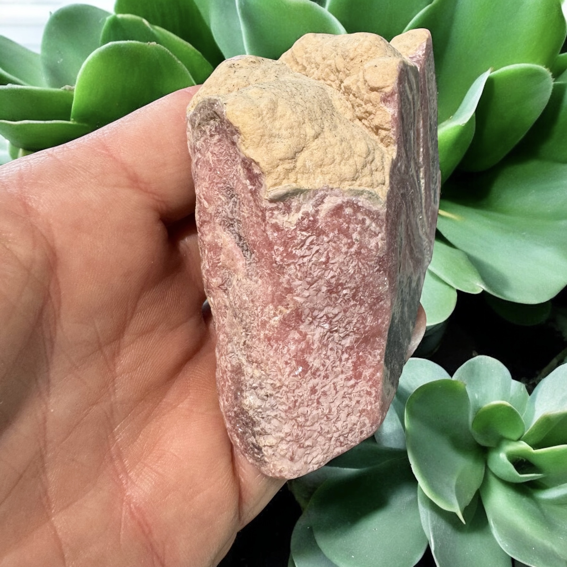 En Rhodochrosit rå skive med én poleret side er som et hjerte, der både husker sine rødder og stråler sin skønhed udad – perfekt til dig, der vil møde verden med åben kærlighed og urokkelig indre styrke.