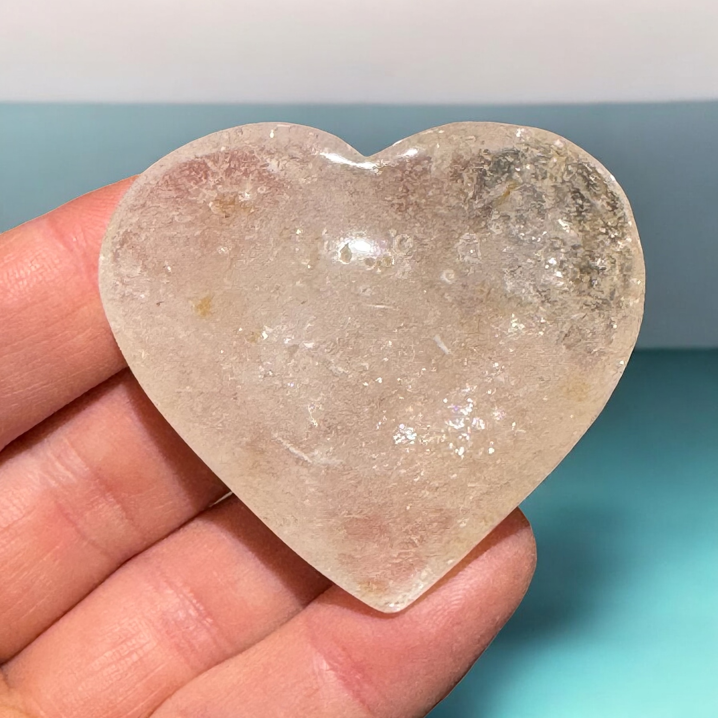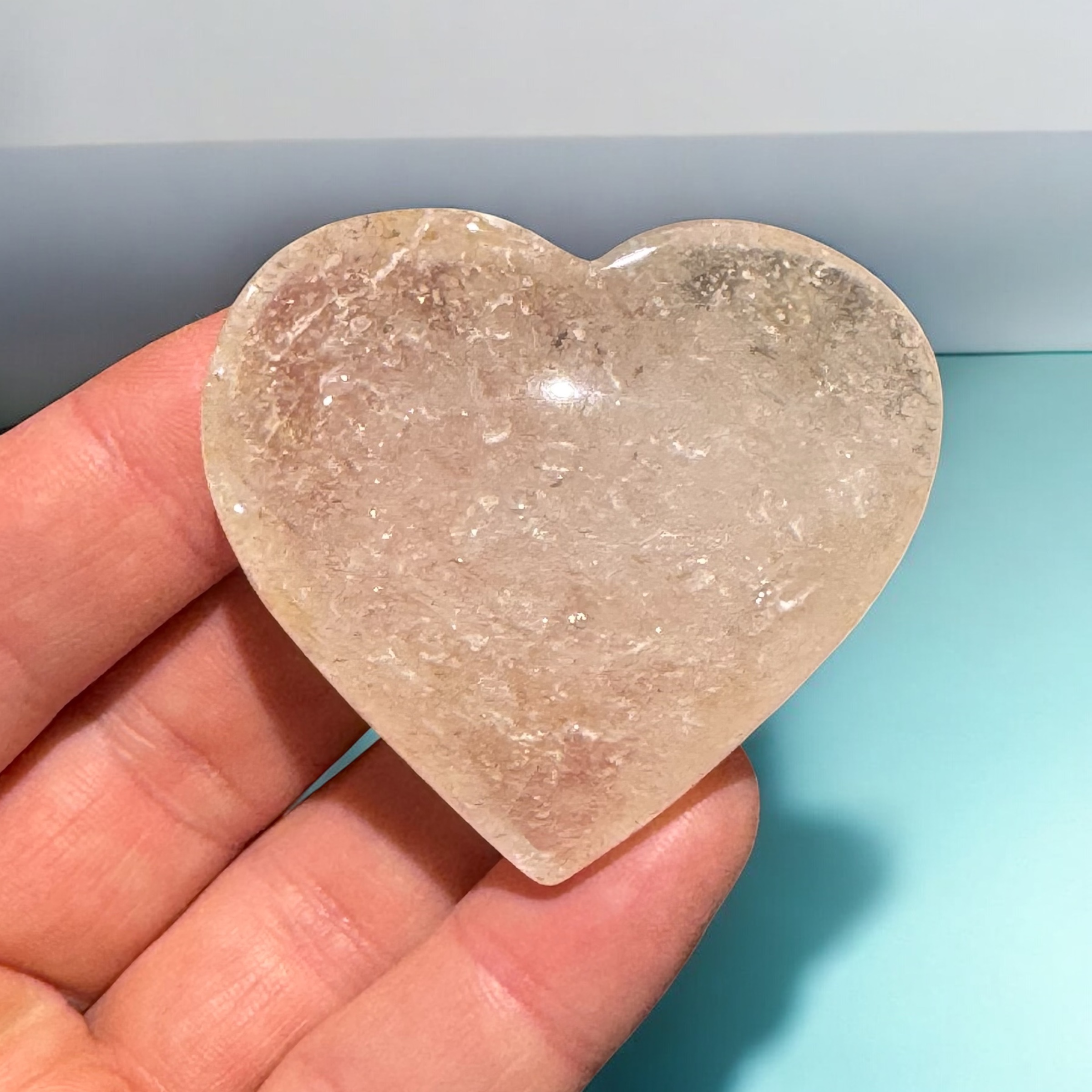 Et Bjergkrystal Hjerte med Golden Healer er som en lille sol i et klart prisme: det renser, oplader og åbner hjertet, så dine visioner kan blive til virkelighed – med varme, klarhed og jordet fred.