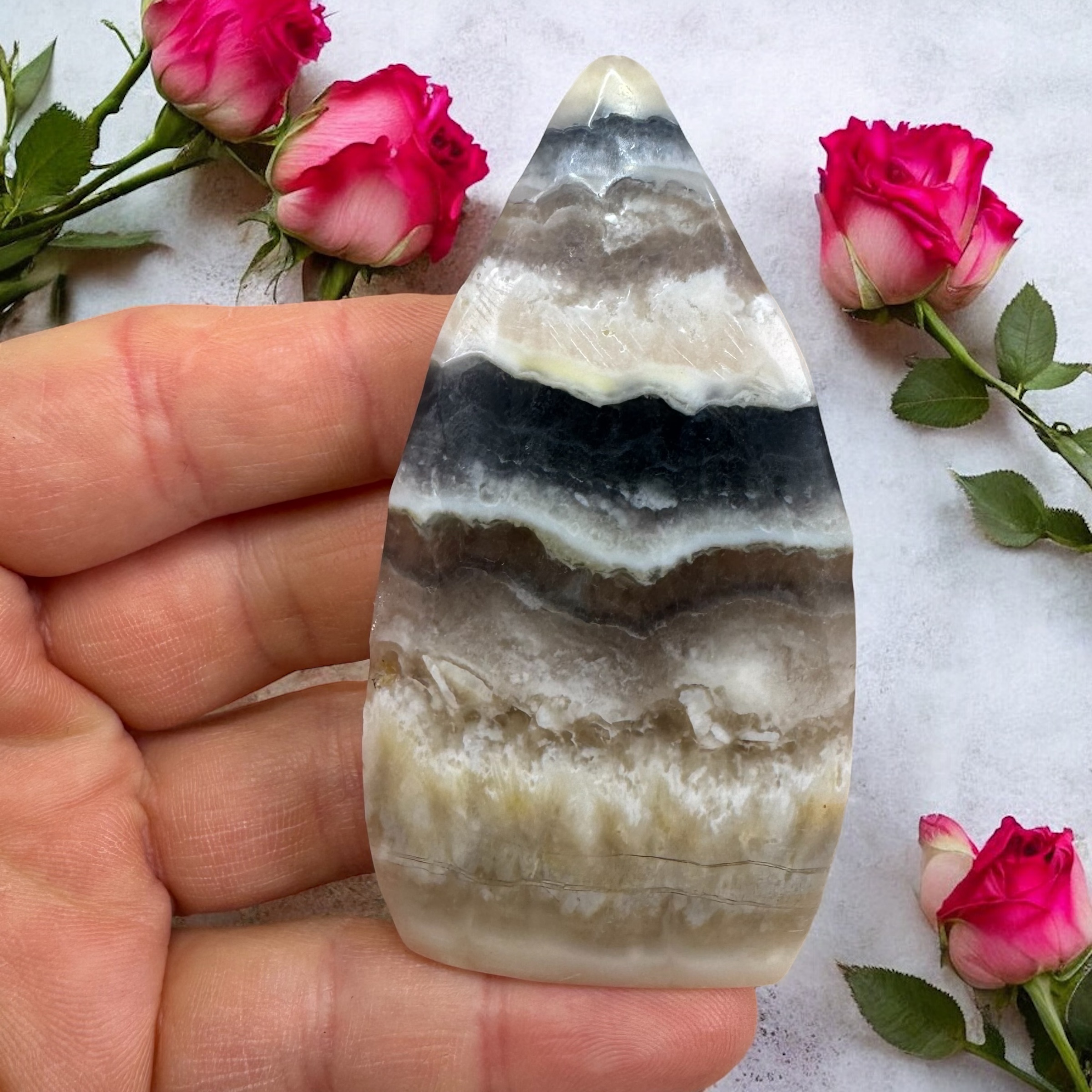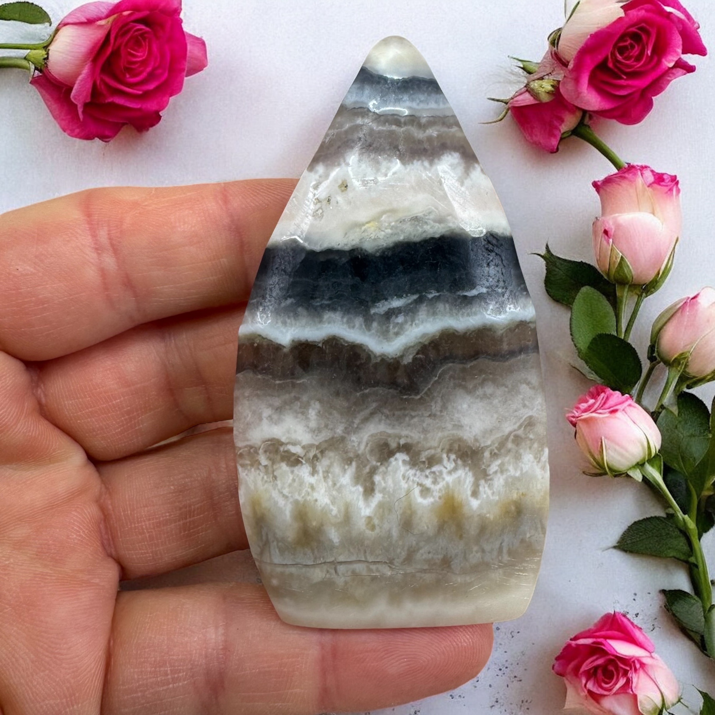 Freeform-formen giver hver sten et unikt udtryk og gør den til en smuk tilføjelse til ethvert hjem eller spirituelt rum. Den kan bruges som en meditationssten, placeret i et rum for at bringe en følelse af fred og harmoni, eller holdes i hånden for at styrke dens energier. Blå Stribet Calcit Freeform er en ideel sten for dem, der ønsker at forbinde sig dybere med deres følelser, forbedre deres kommunikation og skabe en beroligende atmosfære i deres liv.